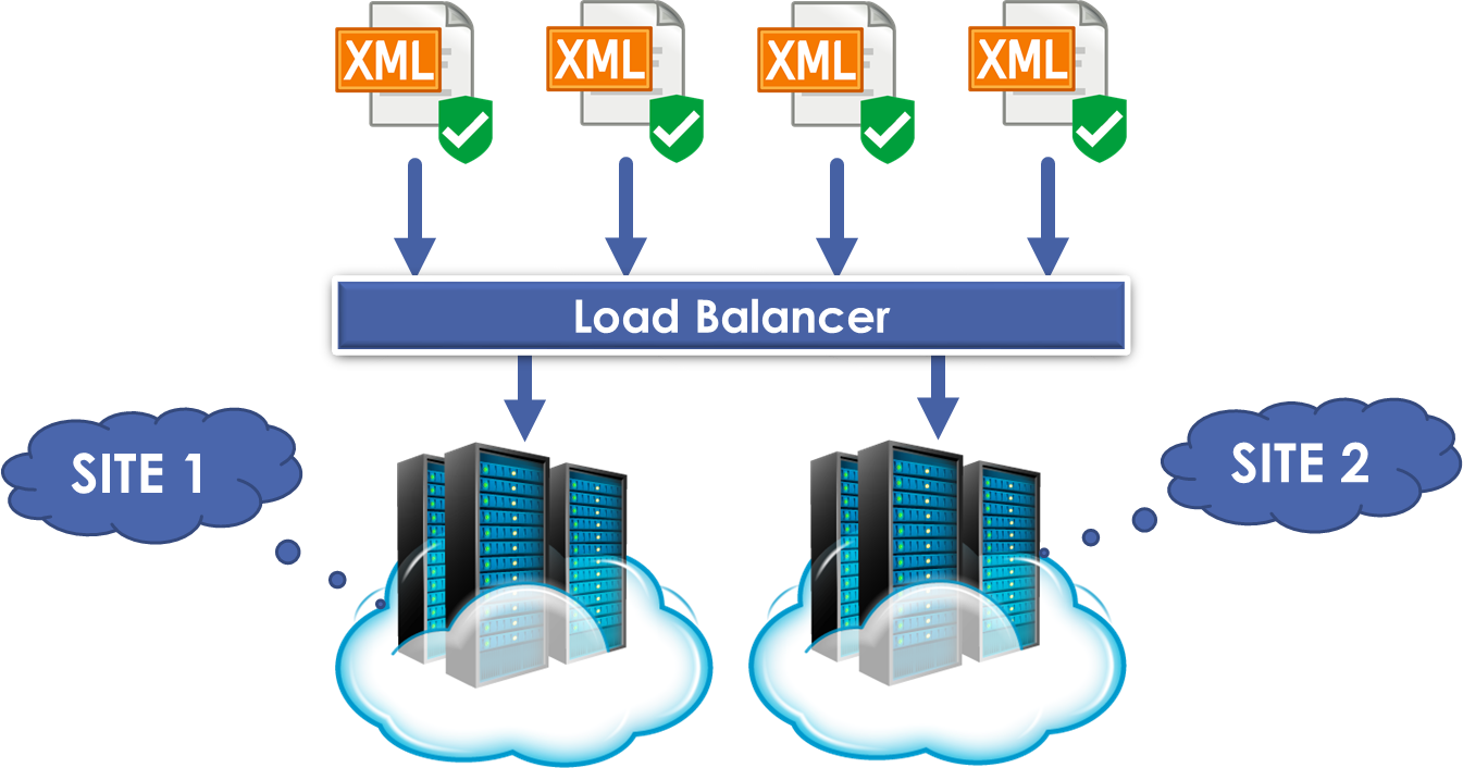 O processo de validação/autorização é feito de forma síncrona, ou seja, o sistema do contribuinte espera até terminar todo o processo. Sendo assim, o referido processo deve ser o mais rápido possível de modo a não impactar as atividades do contribuinte. No sentido de minimizar o tempo de processamento, a Plataforma Eletrónica que vai processar e armazenar as faturas e documentos equivalentes, deve ter mecanismos de alta disponibilidade, assim como ilustrado na figura abaixo.
